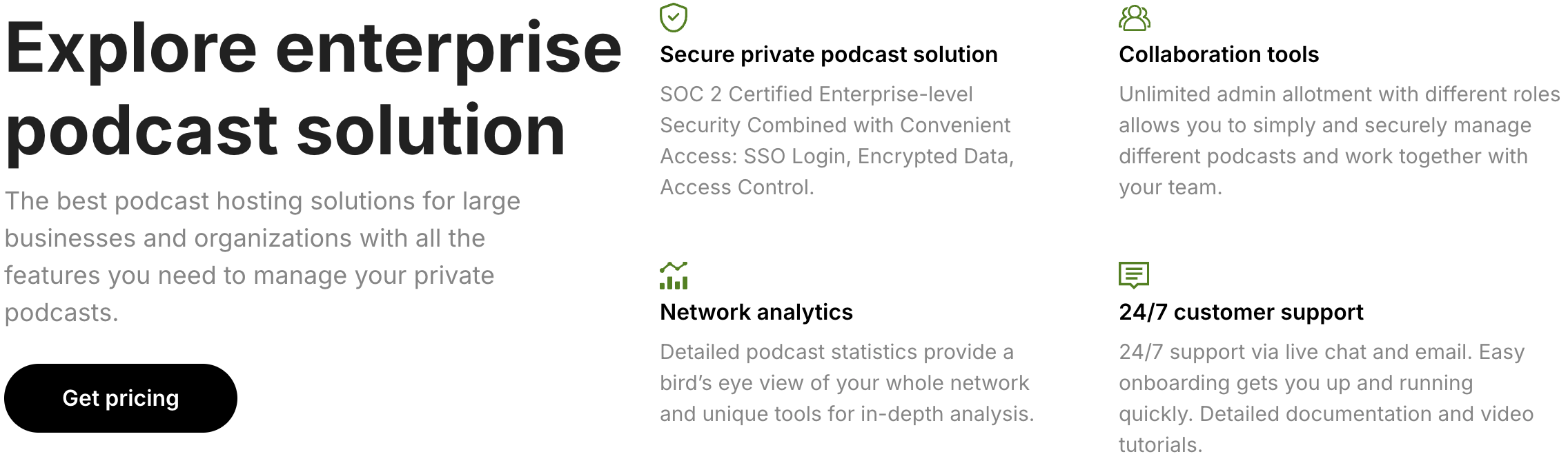 If your organization uses an identity provider like Okta, Azure AD, or Google Workspace for centralized authentication, the Business plan integrates with SSO. This matters for IT departments that need to enforce security policies, manage onboarding and offboarding, and ensure that departing employees lose access immediately. Solo creators will never need this; enterprise podcast operations absolutely do.